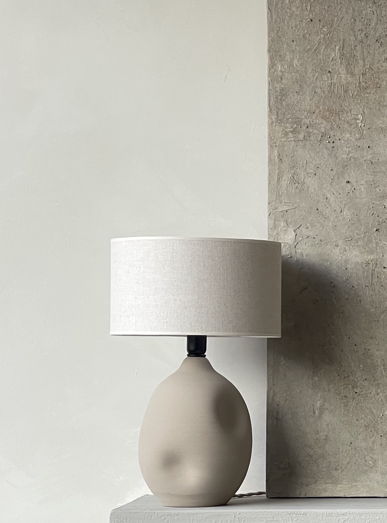 Account aanmakenHandgemaakte aardewerken tafellamp Liz zand met linnen kap
